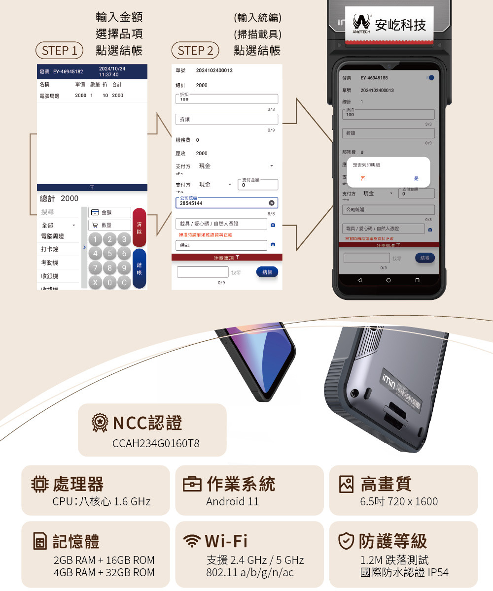 imin Swift 1 手持電子發票POS收銀機 / 發票機 / 多元支付機